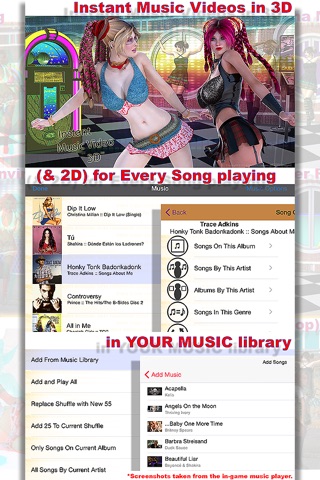 Instantly turn your songs into a music videos by adding interactive 3D dancers, environments and special effects to your music library in REAL 3D!