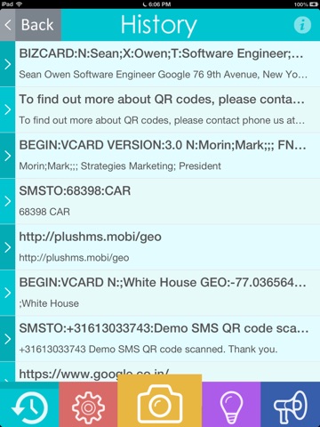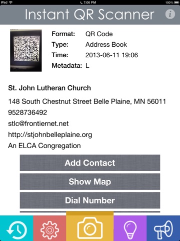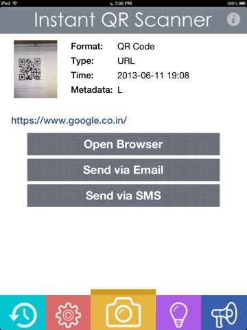 The Instant QR Scanner is fast and efficient application to scan 2D barcode including QR code and Data Matrix. You can direct visit the URL, store mobile number in mobile PhoneBook and share it in social media sites. Very fast and instant.