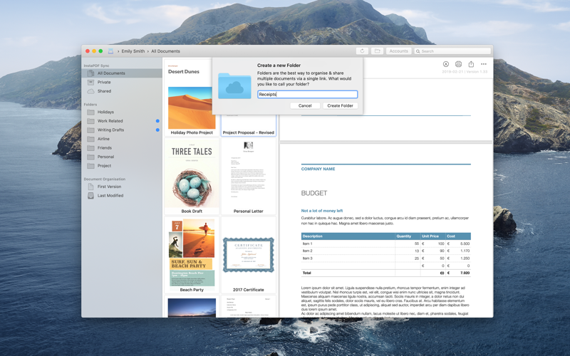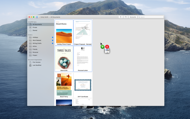 Restore your work-life balance by keeping your work and private documents separate, but accessible. You can even work on documents for multiple companies. Switch accounts instantly to by pressing CMD + U on your keyboard.