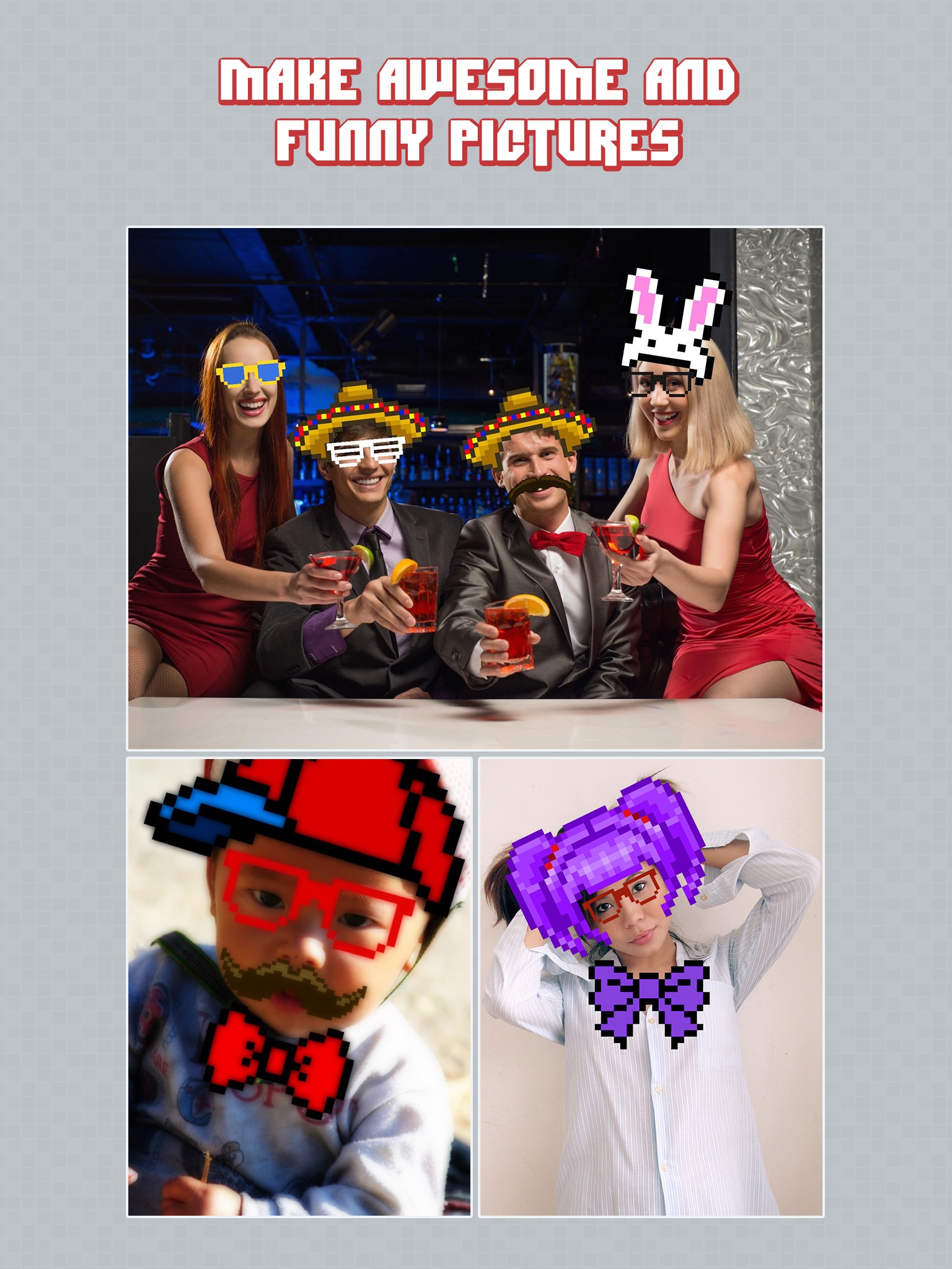 -Choose from over 102+ 8-bit style stickers to add to your photo