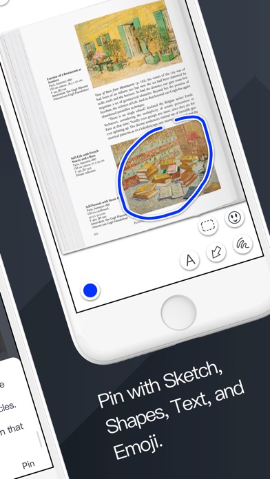 • EASY PIN: Make a pin (rectangle, arrow, text, scribble, and emoji) on any content, and leave a note for future reference.