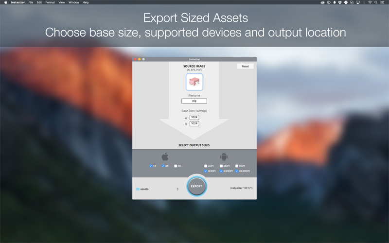 Instasizer exports your images at the correct iOS and Android sizes with proper naming.