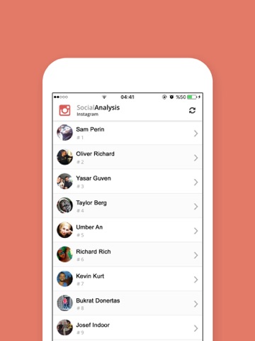 The application analyzes your shares on your Instagram account and provides you the most likers and most reviewers.