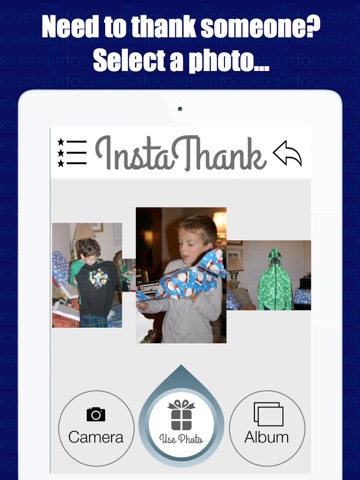 Take photos of your kids opening gifts then send an IntaThank to friends and family. Great for out of town family and friends.