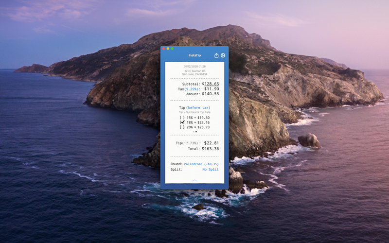 • Tip based on the tax-excluded amount (before tax), to avoid the unfair tip suggestions shown on the bill.