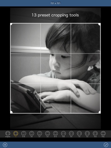 You can easily crop your photos with 13 preset cropping tools. And you can also rotate, flip horizontally or vertically for your photos.