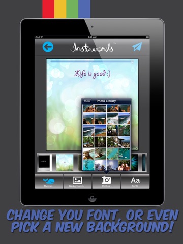 "Whether a title to a photo, kind message, or pun, Instawords Pro makes it easy to share your thoughts in a fun visual way." - App Advice