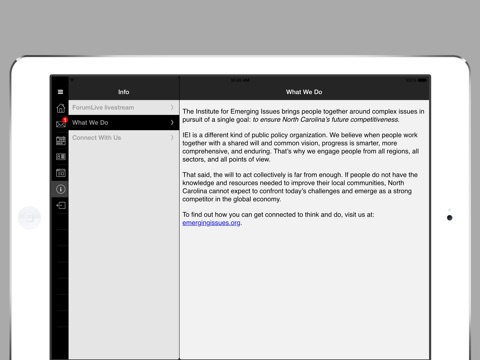 A online hub that allows NC citizens to connect with one another and exchange ideas on our states most pressing issues in the areas of education, health, economy, and environments as we connect, think and do.