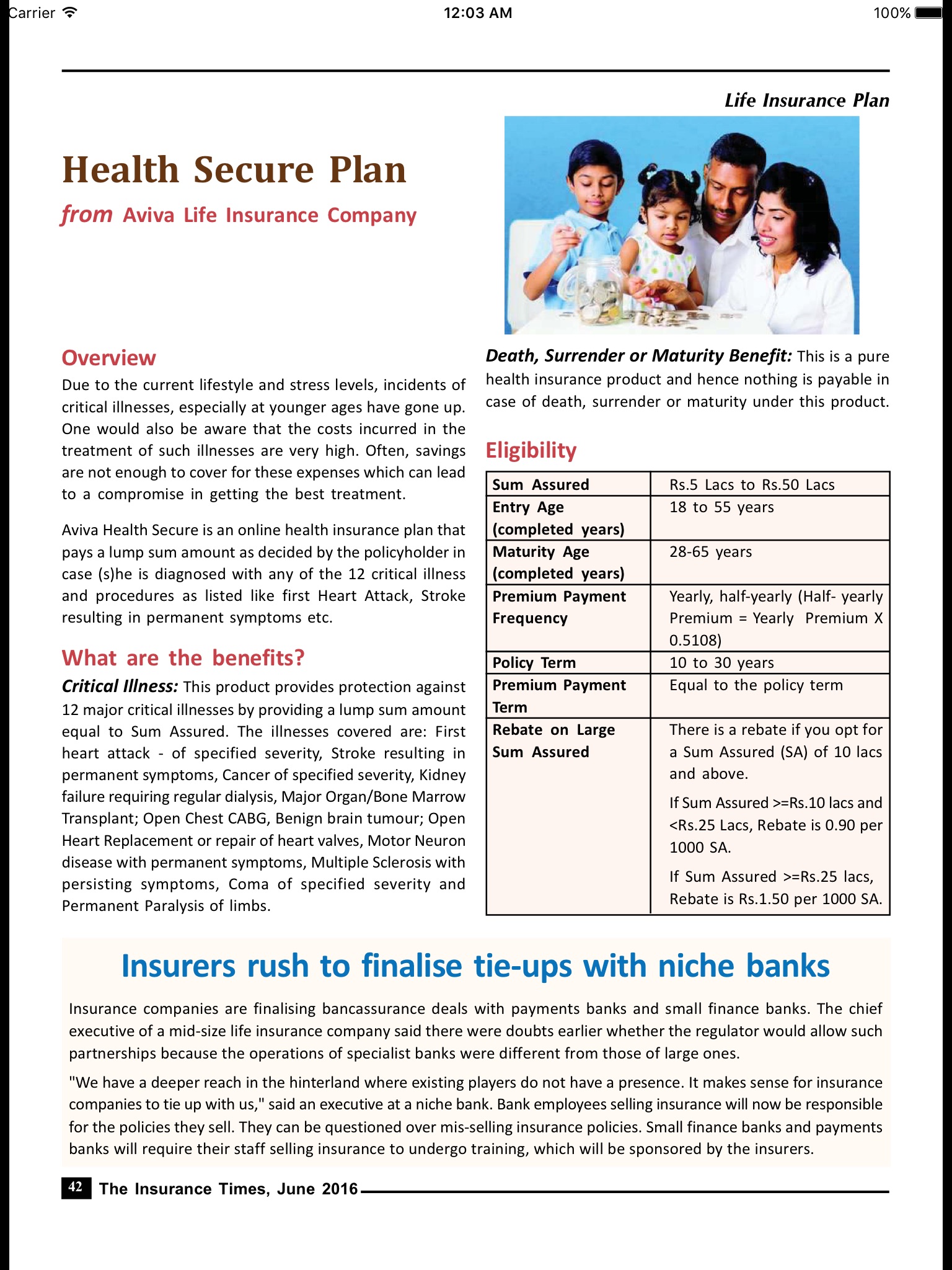 We regularly review the policies issued by life and non-life companies including comparisons of various products.