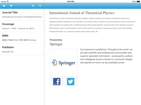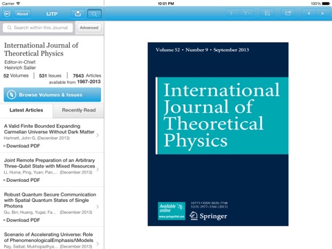 Tap into the most recent developments in the field of theoretical physics with the International Journal of Theoretical Physics app. The International Journal of Theoretical Physics is an international peer-reviewed journal published by Springer Science+Business Media. The Journal continuously publishes original research and reviews in theoretical physics and neighboring fields and offers fresh inquiry into quantum measurement theory, and other similarly fundamental areas.