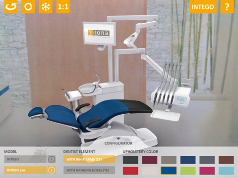 Experience INTEGO in 3D – in your practice. With help of augmented reality (AR), you can see INTEGO three-dimensionally from all sides. The camera of your iPhone or iPad takes the environment and the App puts the new dental chair INTEGO in this scene – even in its original size. The App also allows you to select different colors and configurations.