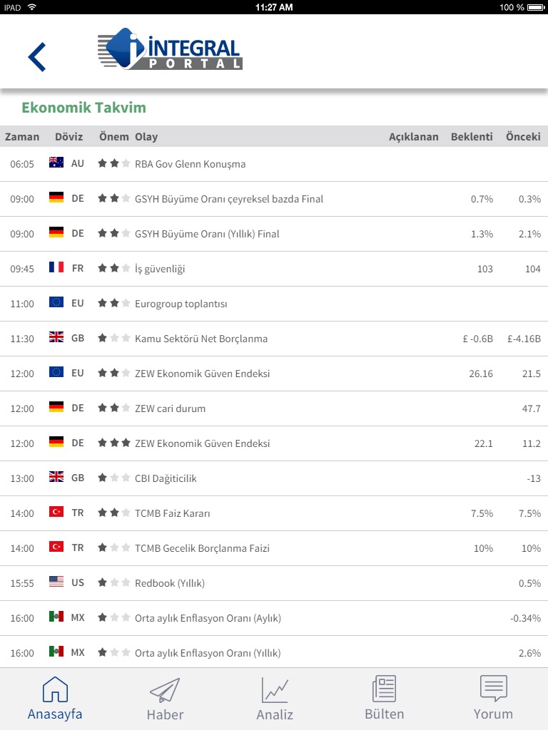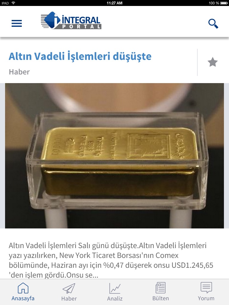 İntegral Portal Uygulaması, analiz departmanının FOREX / BIST / VIOP ile ilgili üretimlerinin paylaşıldığı analiz sitesinin mobil uygulama modeline uygun olarak arındırılmış versiyonudur.