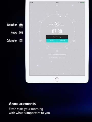 ◉ News / Weather / Calendar announcements to fresh start each morning with important information