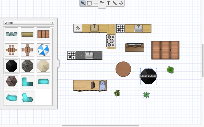 • Add furniture and structural elements such as doors, windows, and staircases.