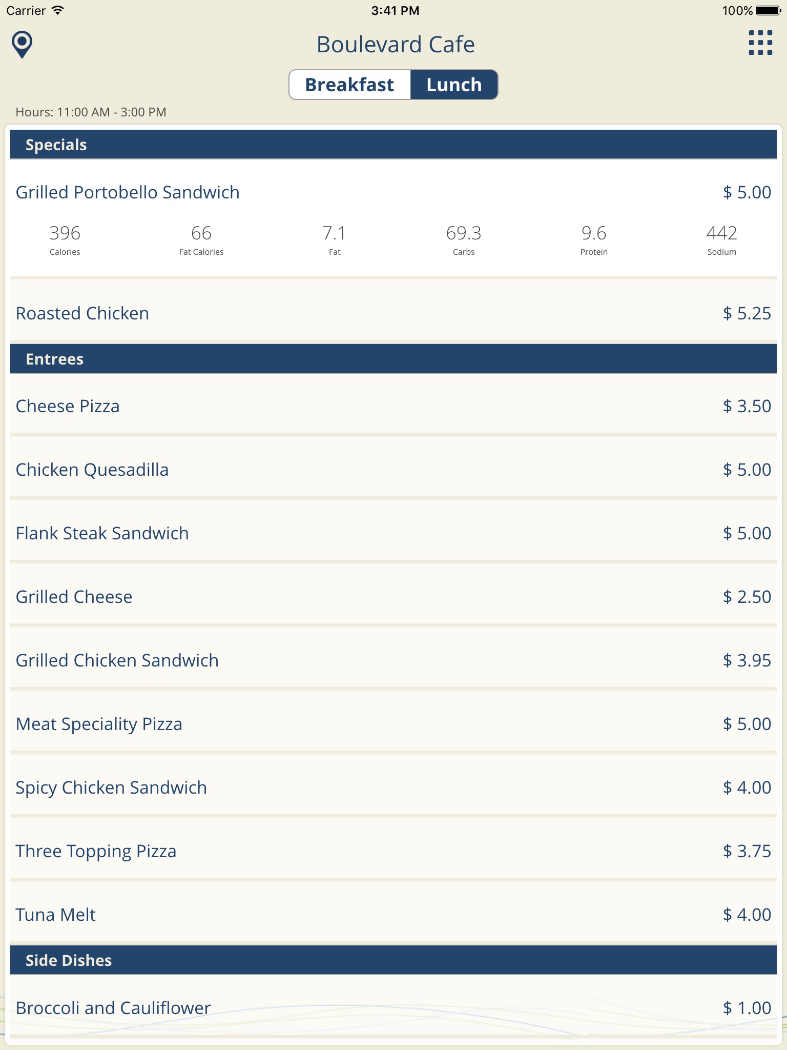 Café Menu - See daily specials and menu offerings at your local café, including nutrition information so you can plan healthy meals.