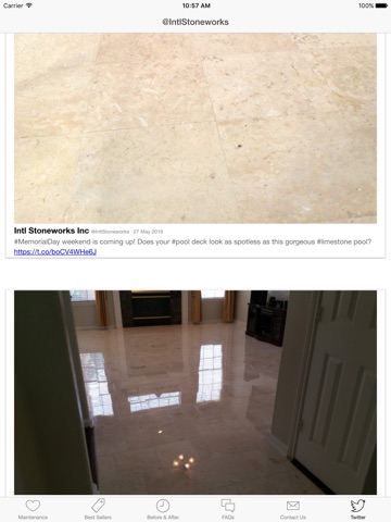 Caring for you natural stone has never been easier. With this International Stoneworks app, you can learn which products and methods are safe and efficient to clean, hone, polish and seal your natural stone, tile and grout.
