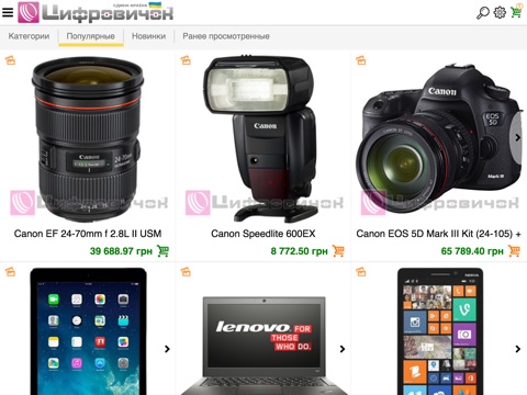 У нас представлен широкий ассортимент качественной, профессиональной цифровой техники: фотоаппараты, видеокамеры, аксессуары для них, студийное оборудование, фотопринтеры и тому подобное. Также у нас можно купить компьютерную технику, телевизоры, мобильные телефоны, планшеты, игровые приставки, мелкую бытовую технику.