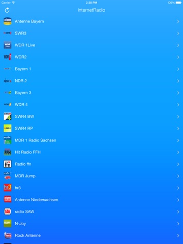 Antenne Bayern, SWR3, WDR 1Live, WDR2, Bayern 1, NDR 2, Bayern 3, WDR 4, SWR4 BW, SWR4 RP, MDR 1 Radio Sachsen, Hit Radio FFH, Radio ffn, MDR Jump, hr3, Antenne Niedersachsen, radio SAW, N-Joy, Rock Antenne, Klassik Radio, Radio RTL, Radio Hamburg, EGO FM, Radio 7, Energy Berlin, Bremen Vier, Kiss FM, Radio Charivari München, Berlin Metropol FM, Radio Bonn, Radio Gong 96.3, Star FM Berlin, BR-Klassik, JazzRadio 101.9, HR4, Antenne Bayern Info Digital, Antenne Bayern Oldies But Goldies, baden.fm, Energy Hamburg, domradio, Planet Radio, Radio Arabella, Radio PSR, Radio RSA