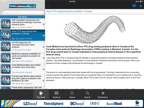 The Interventional News app has exclusive content with live updates from key interventional conferences such as SIR, ECIO, GEST, CIRSE, BSIR and LINC.