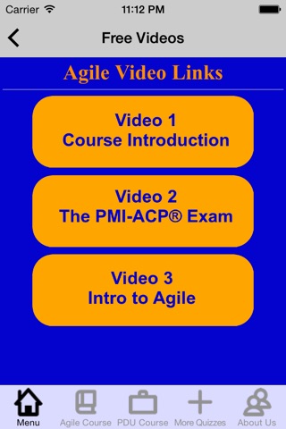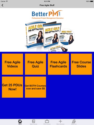 Also you can access a 25 Credit Hour PMI-ACP® Prep Course right on this device! Learn the SCRUM basics with informative videos, slides, and MP3s, and also earn 25 PDUs Instantly! These PDUs are valid for the PMP® or PMI-ACP® Credential. USA-based support via email with a certified instructor included with every app.