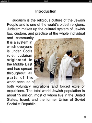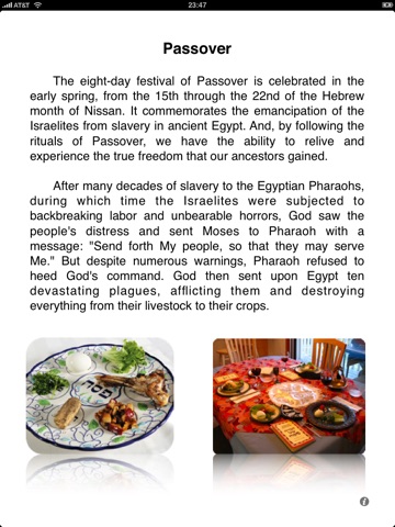 The app contains information on Jewish history as well as major Jewish holidays such as Passover, Hanukkah, Purim, and Rosh Hashanah.