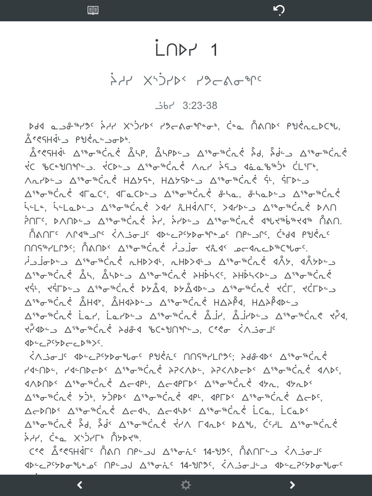 Inuktitut Bible Reader is a beautiful way to read the Bible in Inuktitut on your iPhone or iPad that puts reading quality first.