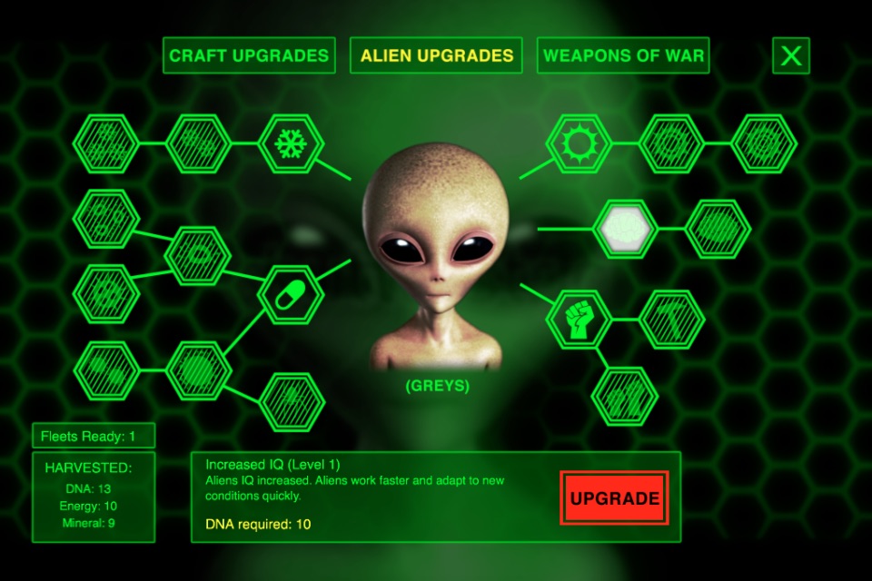 - Evolve your aliens to increase their chances of success.