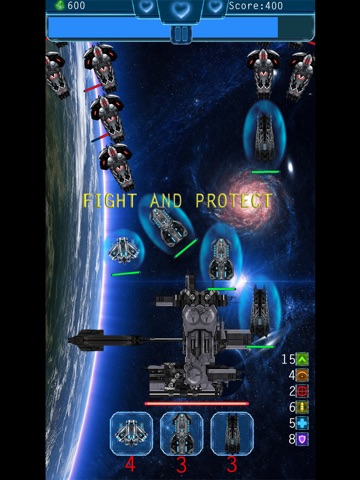 Fight against an alien invasion, protect your space station, mothership(destroyer) and protect other planets against invasions.