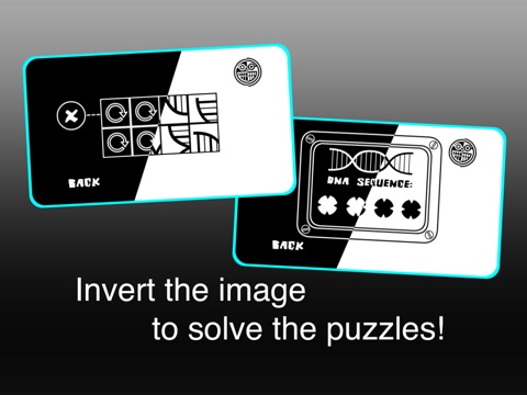 Invert the image to solve the puzzles - black becomes white, white becomes black - and the solutions are revealed!