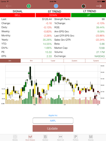 Stock trade signals are based solely on price—a core principal in trend following methodology. Our proprietary stock trading signals work with pre-defined StrengthRank™ settings to search for strong stocks in rising industries. The MuscleStocks™ search setting always identifies best of breed stocks. Qualified stocks get a simple buy, sell, or hold signal.