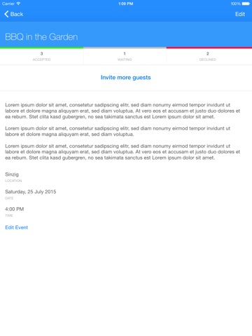 - Collaboration: Send your event to a friend and allow him to organize the event with you and let him invite more friends