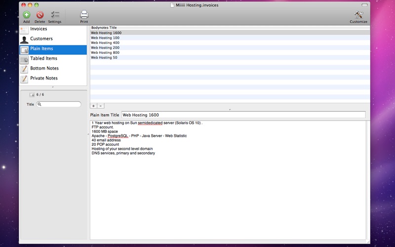 • Notes and text list to be used as footer inside invoices with various text (as example payment methods)