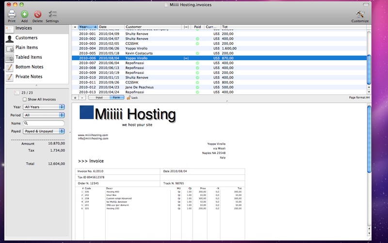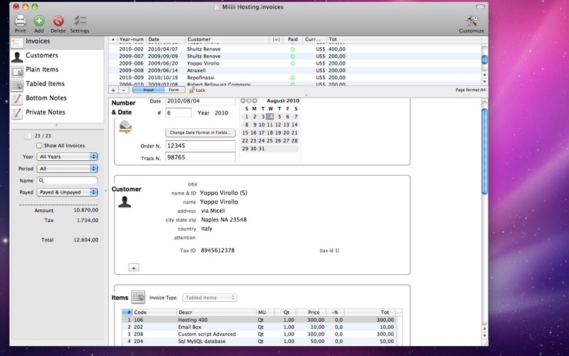 Using Invoices X the user is able to create and manage invoices in his own language, according with his own countrys fiscal rules.