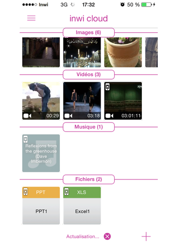 Ainsi, avec inwi cloud vous pourrez déposer vos photos, vidéos, fichiers, contacts et calendrier dans votre espace cloud, accessible depuis nimporte quel ordinateur connecté à internet ou depuis votre smartphone et tablette.