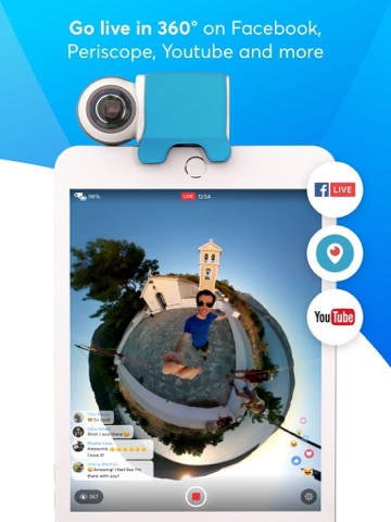 The iO360 app will also let you live stream in 360 directly to Facebook, Periscope, Youtube or any custom server.