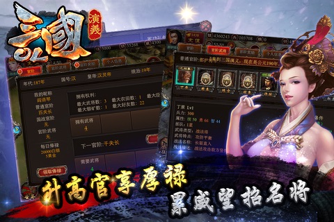 一介平民如何开创一方霸业?自领军征伐天下开始,只要您能满足升级官阶所有需求,便能在三国乱世中稳步高升,官拜大将军、大都督,获取强大的官阶特权及丰厚奖励,手握雄兵百万,更有独家武将,旷世绝技助您成就无双霸业!