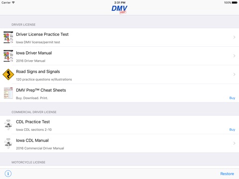 I would highly recommend this app for anyone who has to take the knowledge test for a permit or license.