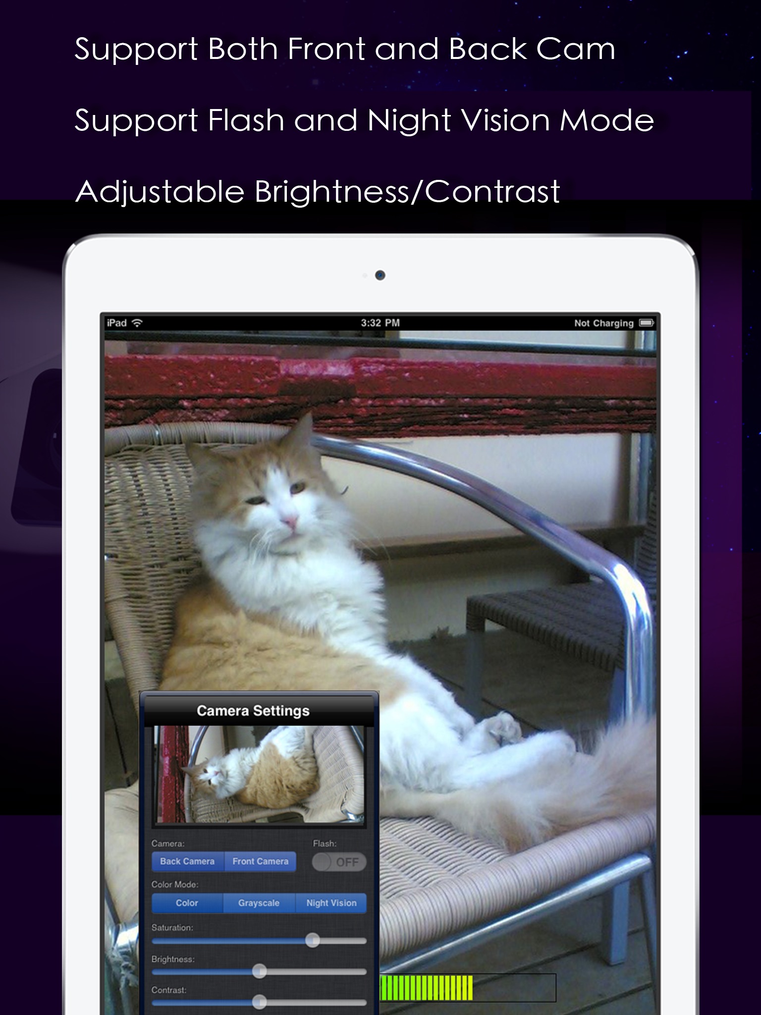 Appli magique marche très bien avec iPad 1 ou 2,iPhone 4,ou iPod avec une caméra bien sur ! Ex. Mon iPad est chez moi allumé,de mon iPhone je vais sur safari,je rentre l adresse qui est donné quand j ouvre l appli ip caméra (facile),et comme par magie je vois si mon chien ne déconne pas,si quelqu un sonne à la porte,si quelqu un veut me tapper ma bécane ou si quelqu un squate ma piscine!! Ami n hésite pas,si comme moi tu as des doutes,cette appli est pour toi.