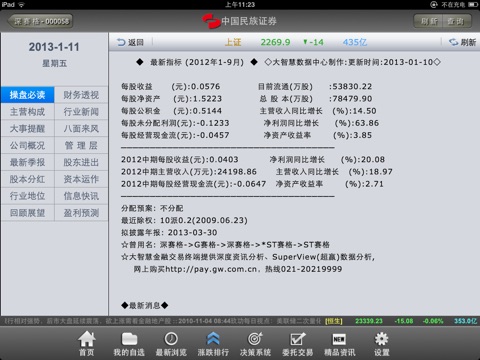 2、实时解盘、信息地雷、综合资讯、个股资讯与个股行情、盘口信息同屏显示,优化看盘操作,有效节约时间