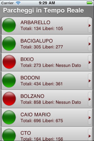View real-time availability of parking in the city of Turin, and identifies the location on the map.