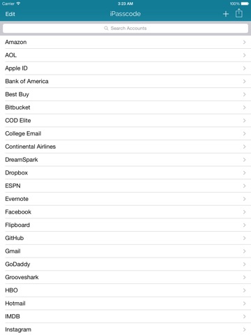 -Search Feature: So you don’t have to manually look through all your usernames and passwords when you’re in a hurry, iPasscode has a convenient search bar located at the top of the list of accounts.
