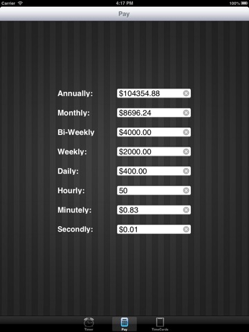 iPay Time shows how much money youre making, as you make it! Keep track of the amount of money you make every millisecond to the thousandth of a dollar!
