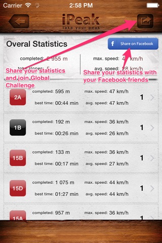 Statistics - the application provide users of iPeak with: their speed, distance traveled and conquered heights over a given period of time.