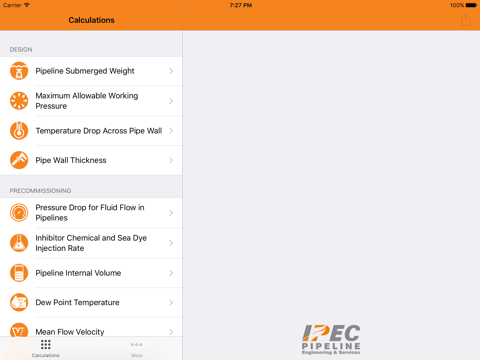 IPEC Toolbox is a handy tool for Oil, Gas & Petrochemical engineers. This application provides common formulas in design, test and pre-commissioning of the oil & gas pipelines.