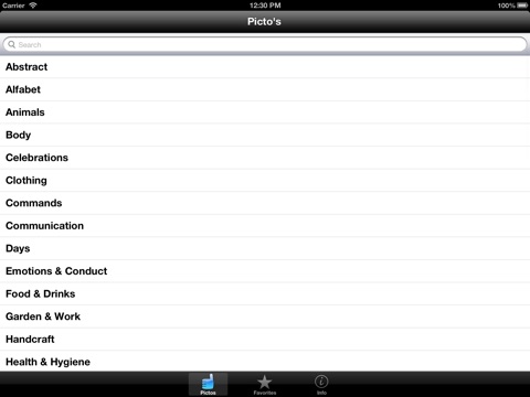 The pictogram is easy to find through a few taps, iPicto helps ensure that the person can learn to understand something quickly, without much difficulty. To improve the usage speed of the app its possible to add a specific picto to the favorite folder. After that, its available in the favorite tab.