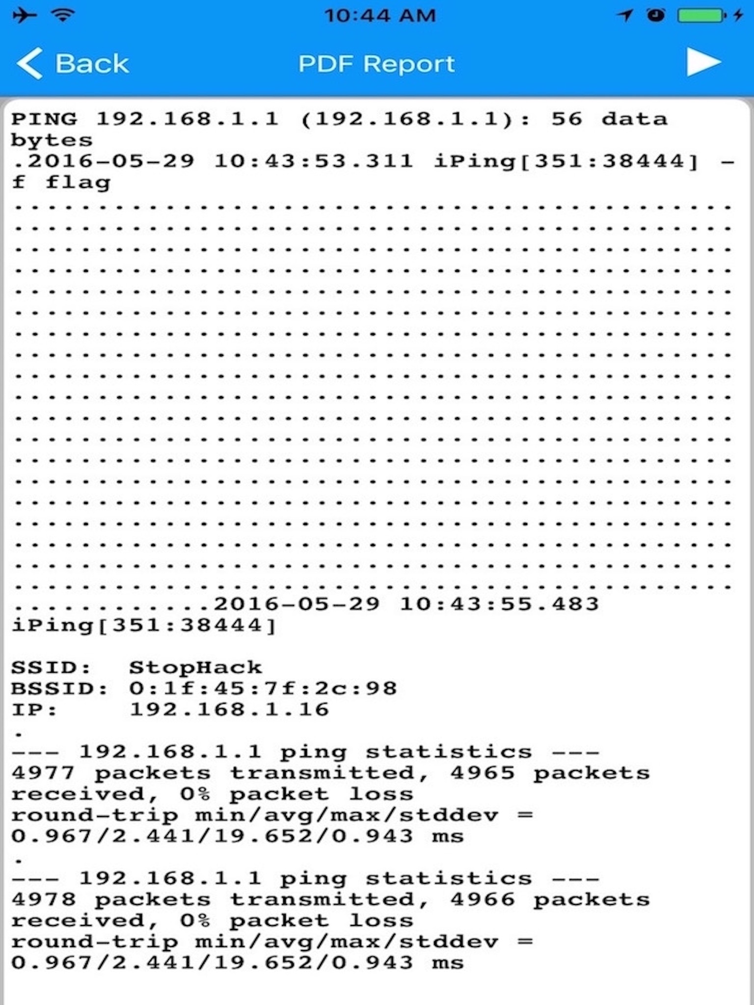The ONLY IOS packet generation tool that supports fast ping, multicast/broadcast and ToS(type of service) or QoS(Quality of service) setting, jumbo packet(large MTU testing with fragmentation flag off) etc advanced options, it is not only for network admin of Enterprise network but also for regular users.