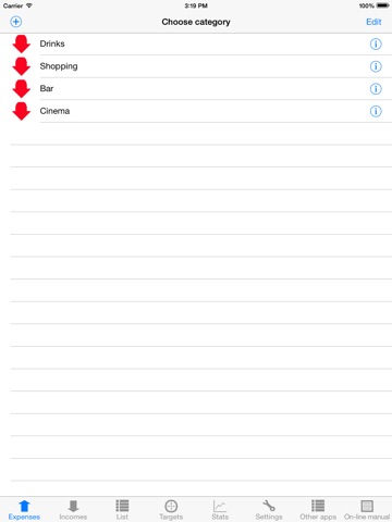 Spesso si blocca sulle statistiche. Manca la visualizzazione delle spese o entrate sotto una categoria che sarebbe molto utile, invece di trovarla tra tutte quelle inserite. Per il resto è molto semplice ed intuitiva.
