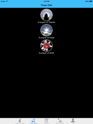 In addition to viewing and making requests, you can send a Prayer Gift to someone via various social methods. The gifts are for prayers of thanksgiving, hope, or grief, and are scriptures designed to help lift up those grieving you send it to, or to simply have a prayer of thanksgiving or one of hope.