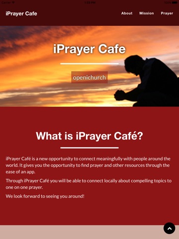 iPrayer Café is a new opportunity to connect meaningfully with people around the world. It gives you the opportunity to find prayer and other resources through the ease of an app.