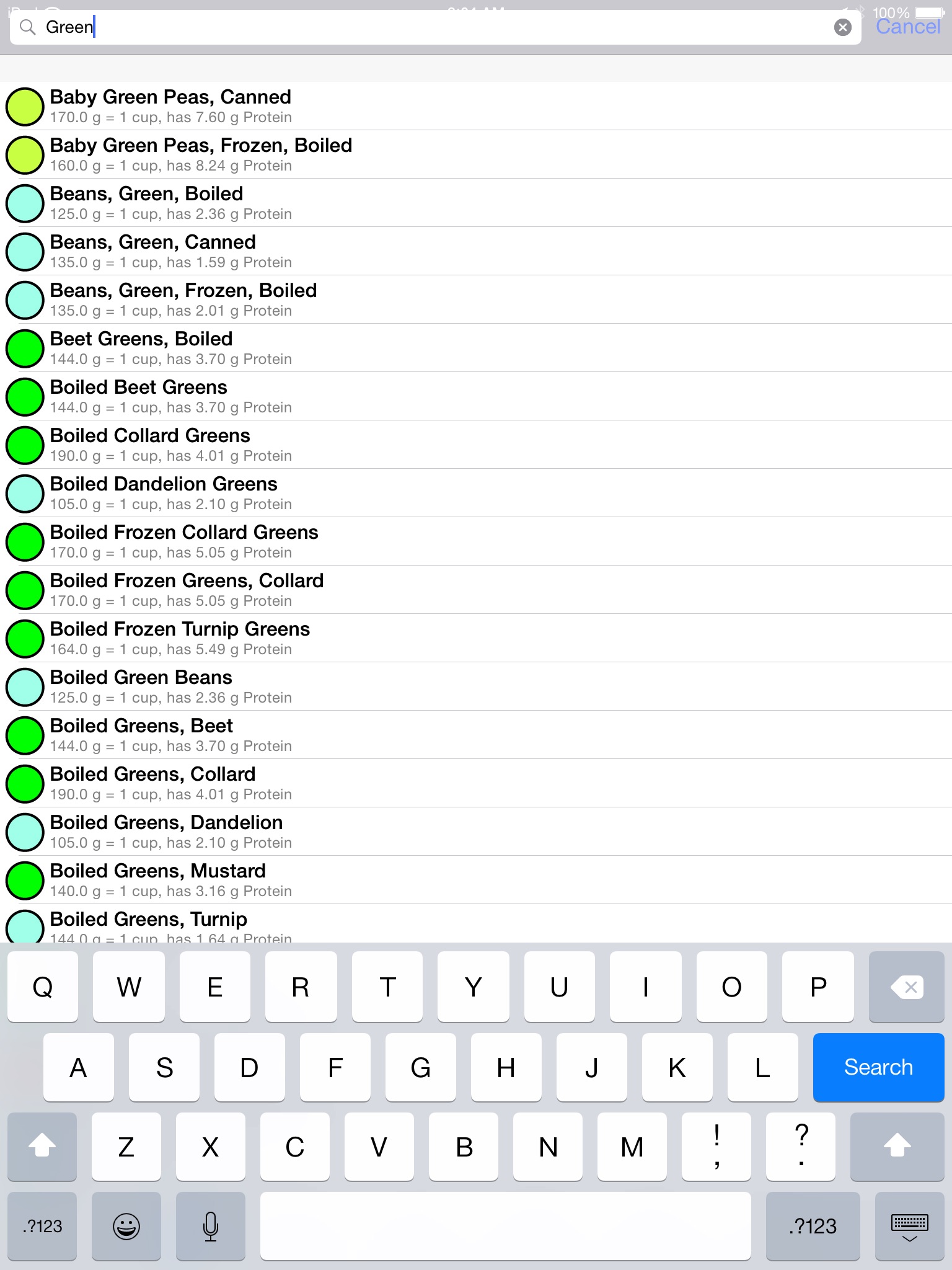 Designed for bodybuilders and vegans concerned with their protein intake, iProtein users can look up different foods according to category- groupings include Fruits & Vegetables, Fast Food, Dairy & Eggs, Cereal Grains, and Snacks. For each food selection, the app will list the serving size, calorie content, protein content in grams, percentage of protein by weight, and the USDA Nutrient Database number.